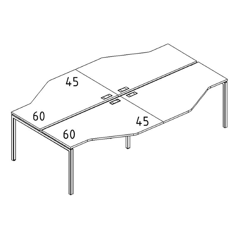 Рабочая станция со столами эргономичными "Техно"на металлокаркасе DUE (4х140) - А4 А2 187-2 ДШ