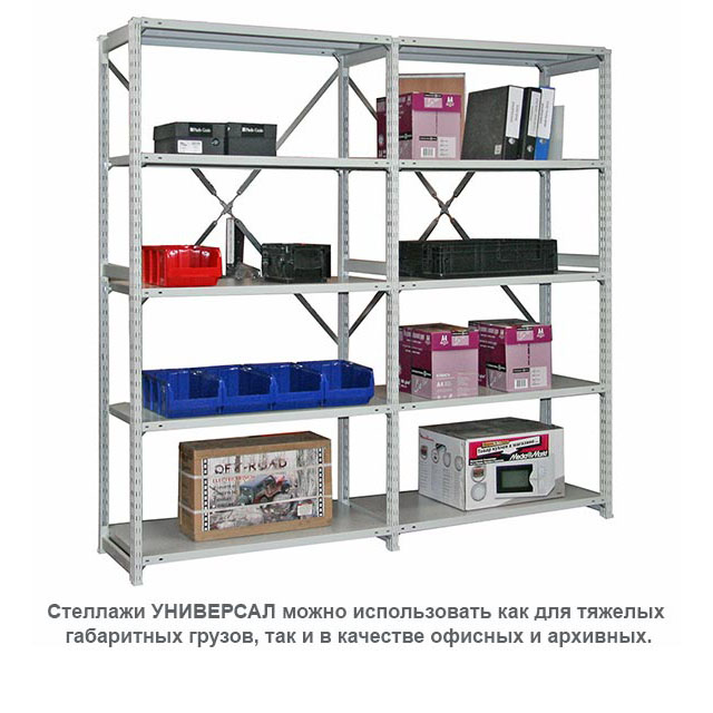 Стеллажи "Универсал" станут прекрасным вариантом для организации складской полочной системы любых размеров. Отлично подходят для склада любых штучных грузов. Благодаря аккуратному внешнему виду, стеллажи ТСУ подойдут и для офисного использования.